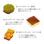【リッチマドレーヌ 抹茶】鶏卵(国産)、バター、砂糖、アーモンド、米粉、食用植物油脂、水飴、澱粉、抹茶、塩/トレハロース